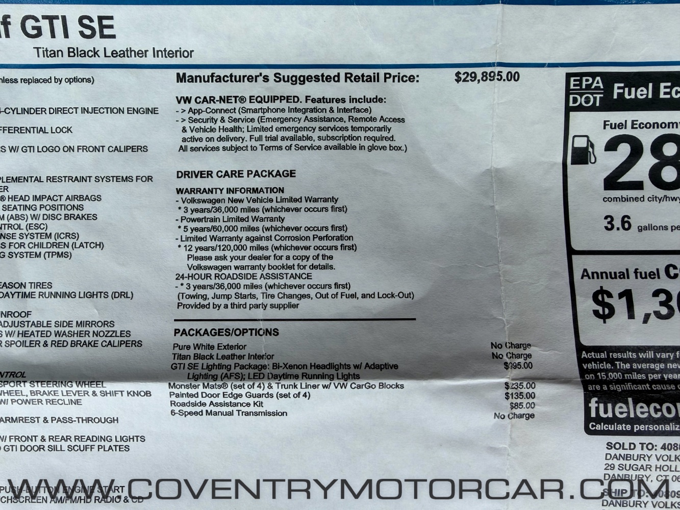 ABS Brakes|Air Conditioning|Alloy Wheels|AM/FM Radio|Automatic Headlights|Cruise Control|Daytime Running Lights|Driver Airbag|Driver Multi-Adjustable Power Seat|Fog Lights|Front Air Dam|Front Heated Seat|Front Power Lumbar Support|Front Side Airbag|Front Side Airbag with Head Protection|Interval Wipers|Keyless Entry|Leather Seat|Leather Steering Wheel|Power Door Locks|Power Sunroof|Power Windows|Rain Sensing Wipers|Rear Spoiler|Rear Window Defogger|Rear Wiper|Second Row Folding Seat|Second Row Side Airbag|Separate Driver/Front Passenger Climate Controls|Side Head Curtain Airbag|Steering Wheel Mounted Controls|Subwoofer|Tachometer|Telescopic Steering Column|Tilt Steering Column|Tire Pressure Monitor|Traction Control|Trip Computer|Vehicle Anti-Theft|Vehicle Stability Control System