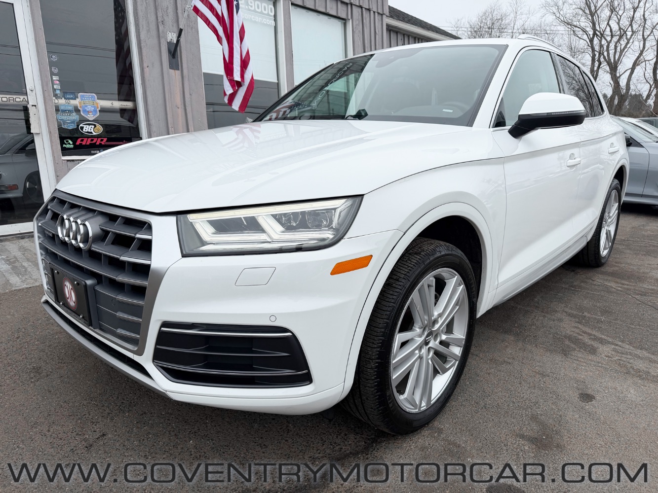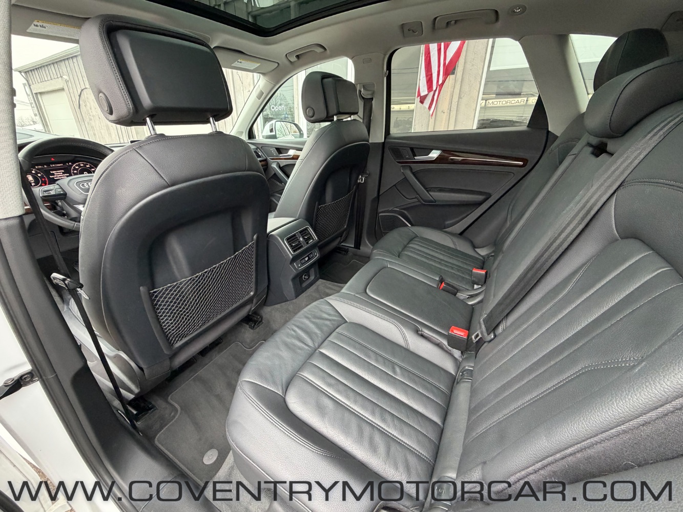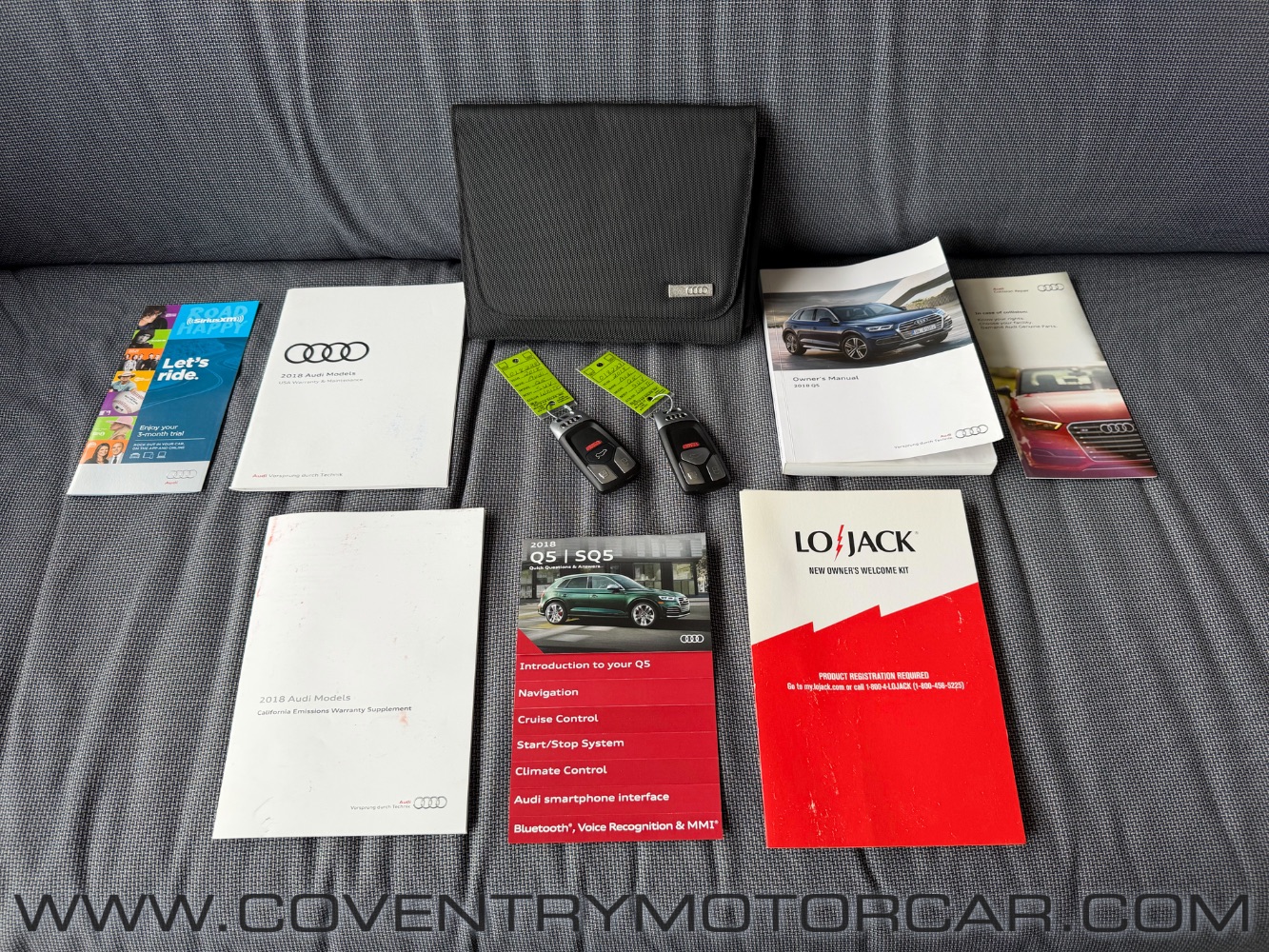 OFFERED FOR SALE IS THIS WELL-MAINTAINED 2-OWNER 2018 AUDI Q5 PREMIUM PLUS QUATTRO FINISHED IN IBIS WHITE WITH A BLACK INTERIOR AND IS WELL EQUIPPED WITH A HEATED FRONT AND REAR SEATS, HEATED STEERING WHEEL, BANG AND OLUFSEN AUDIO SYSTEM, PANORAMIC GLASS ROOF, HEATED POWER SEATS WITH MEMORY, AUDI ADVANCED KEY, LED LIGHTING, PARKING SYSTEM PLUS, AND A FULL SUITE OF DRIVER ASSISTANCE FEATURES INCLUDING AUDI PRE SENSE AND BLIND SPOT MONITORING. IT HAS RECEIVED RECENT SERVICE INCLUDING REAR BRAKE PADS AND ROTORS, TRANSFER CASE FLUSH, AND FRESH OIL CHANGE WITH LIQUI MOLY, MAKING IT FULLY SORTED AND READY FOR ITS NEXT OWNER. THE VEHICLE COMES COMPLETE WITH ALL FACTORY MANUALS, TWO KEYS, AND LOJACK FOR ADDED SECURITY. A CLEAN, PROPERLY MAINTAINED Q5 THAT DRIVES TIGHT AND PERFORMS EXACTLY AS IT SHOULD. PLEASE CALL FOR MORE INFORMATION OR TO SCHEDULE A TEST DRIVE.