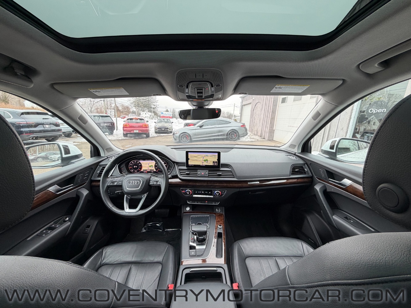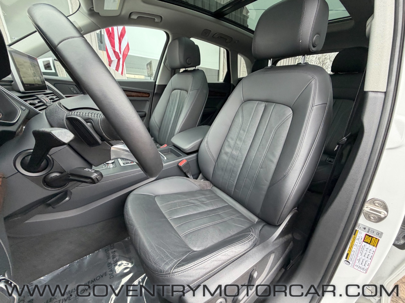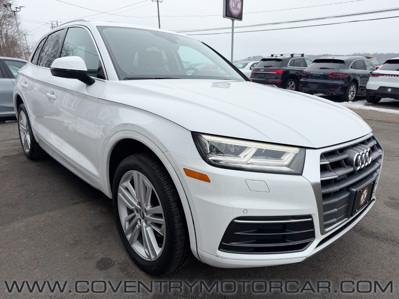 OFFERED FOR SALE IS THIS WELL-MAINTAINED 2-OWNER 2018 AUDI Q5 PREMIUM PLUS QUATTRO FINISHED IN IBIS WHITE WITH A BLACK INTERIOR AND IS WELL EQUIPPED WITH A HEATED FRONT AND REAR SEATS, HEATED STEERING WHEEL, BANG AND OLUFSEN AUDIO SYSTEM, PANORAMIC GLASS ROOF, HEATED POWER SEATS WITH MEMORY, AUDI ADVANCED KEY, LED LIGHTING, PARKING SYSTEM PLUS, AND A FULL SUITE OF DRIVER ASSISTANCE FEATURES INCLUDING AUDI PRE SENSE AND BLIND SPOT MONITORING. IT HAS RECEIVED RECENT SERVICE INCLUDING REAR BRAKE PADS AND ROTORS, TRANSFER CASE FLUSH, AND FRESH OIL CHANGE WITH LIQUI MOLY, MAKING IT FULLY SORTED AND READY FOR ITS NEXT OWNER. THE VEHICLE COMES COMPLETE WITH ALL FACTORY MANUALS, TWO KEYS, AND LOJACK FOR ADDED SECURITY. A CLEAN, PROPERLY MAINTAINED Q5 THAT DRIVES TIGHT AND PERFORMS EXACTLY AS IT SHOULD. PLEASE CALL FOR MORE INFORMATION OR TO SCHEDULE A TEST DRIVE.