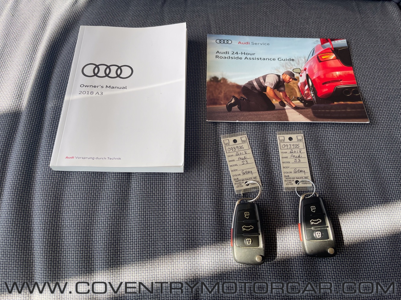 JUST ADDED TO OUR INVENTORY – THIS STUNNING 2018 AUDI S3 IN SLEEK DAYTONA GREY OVER BLACK DIAMOND-STITCHED LEATHER IS THE PERFECT BLEND OF LUXURY AND PERFORMANCE. POWERED BY AUDI’S RENOWNED TURBOCHARGED ENGINE AND EQUIPPED WITH THE SPORT PACKAGE, THIS S3 STANDS OUT WITH ITS RED BRAKE CALIPERS AND BOLD 5-SPOKE V-DESIGN WHEELS. IMPECCABLY MAINTAINED AND PRESENTED, IT COMES COMPLETE WITH TWO KEYS AND THE ORIGINAL OWNER’S MANUALS. EXPERIENCE THE THRILLING PRECISION AND REFINED CRAFTSMANSHIP THAT MAKE THE S3 A TRUE DRIVER’S CAR – CONTACT US TODAY FOR MORE DETAILS OR TO SCHEDULE YOUR TEST DRIVE