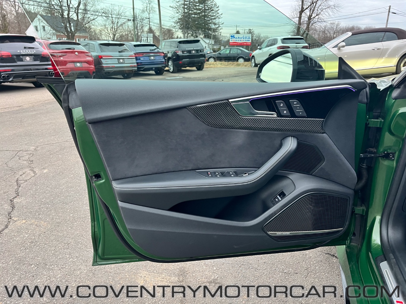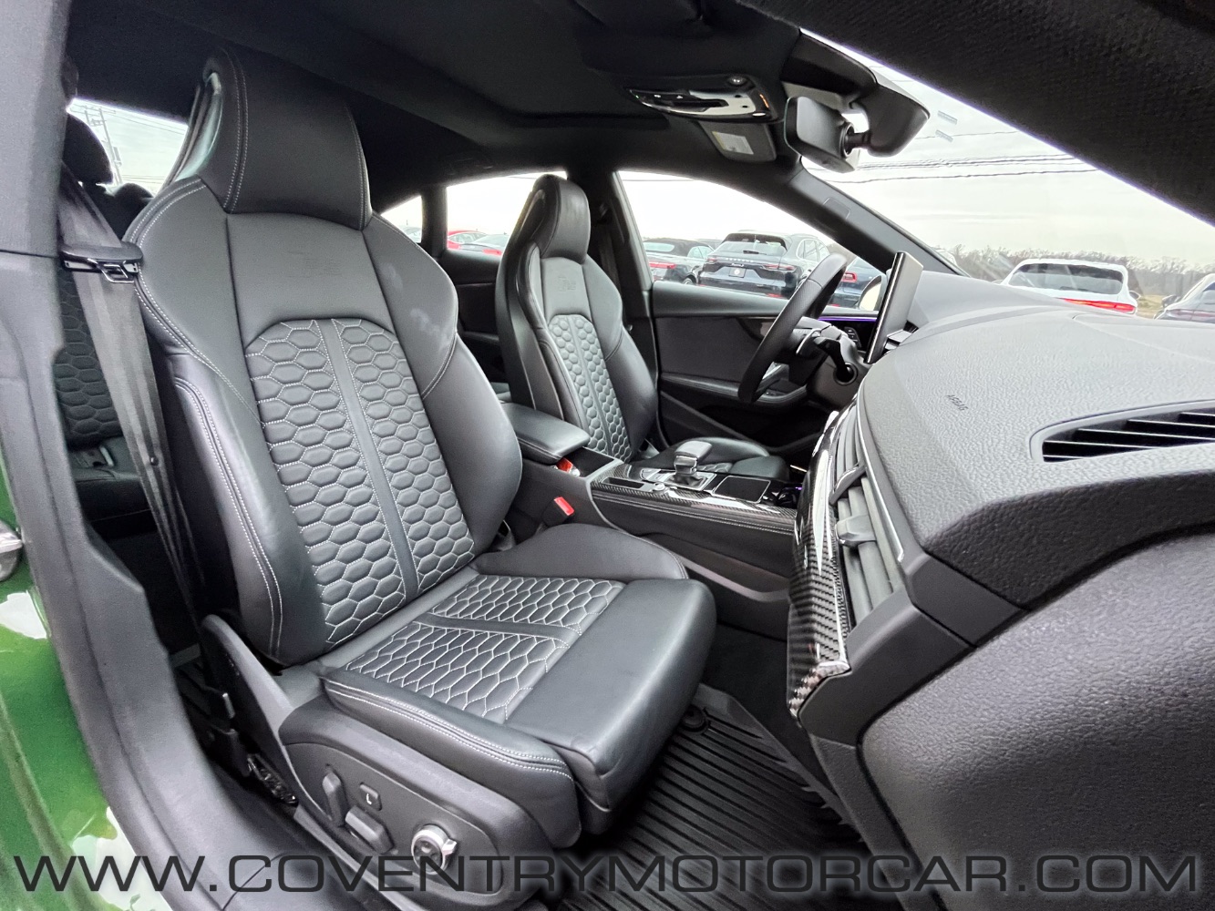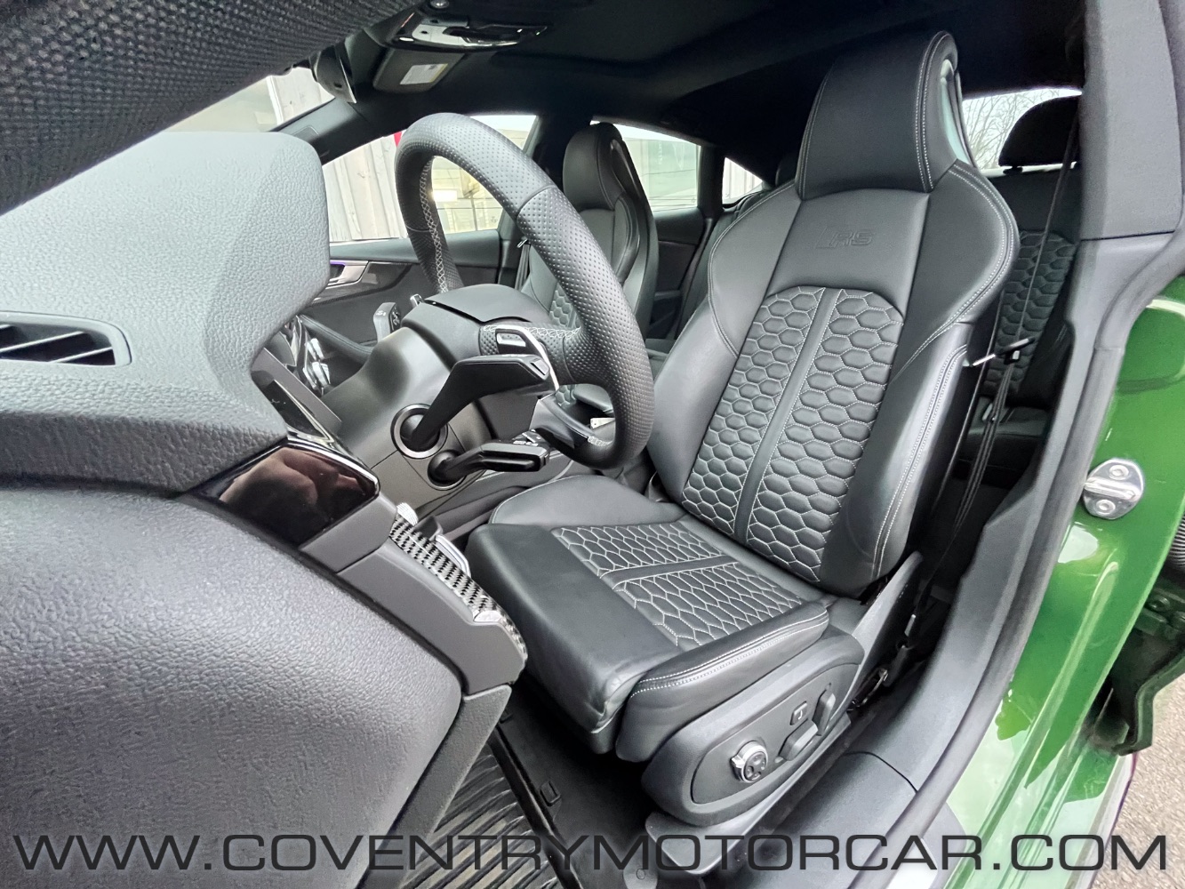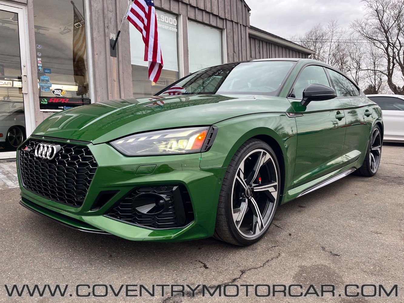 JUST IN IS THIS STUNNING ONE-OWNER RS5 SPORTBACK FINISHED IN RARE SONOMA GREEN METALLIC OVER BLACK LEATHER WITH ROCK GRAY CONTRAST STITCHING, SHOWING JUST UNDER 14,000 MILES. THIS EXCEPTIONALLY CLEAN, ENTHUSIAST-OWNED EXAMPLE IS LOADED WITH HIGH-SPEC DRIVER AND PERFORMANCE OPTIONS INCLUDING ADAPTIVE CRUISE CONTROL WITH ACTIVE LANE ASSIST AND HANDS-ON STEERING WHEEL DETECTION, HEAD-UP DISPLAY, SURROUND VIEW CAMERA WITH PARK ASSIST, BLACK OPTIC PACKAGE, NAVIGATION, SIDE ASSIST, REAR CROSS TRAFFIC ASSIST, AND MATTE ALUMINUM OPTIC MIRROR HOUSINGS. THE RS5 SPORTBACK DELIVERS EVERYDAY USABILITY WITH SUPERCAR-LEVEL PERFORMANCE, QUATTRO CONFIDENCE, AND UNMISTAKABLE PRESENCE IN THIS STANDOUT COLOR COMBINATION. PLEASE CONTACT US FOR MORE INFORMATION OR TO SCHEDULE A TEST DRIVE.