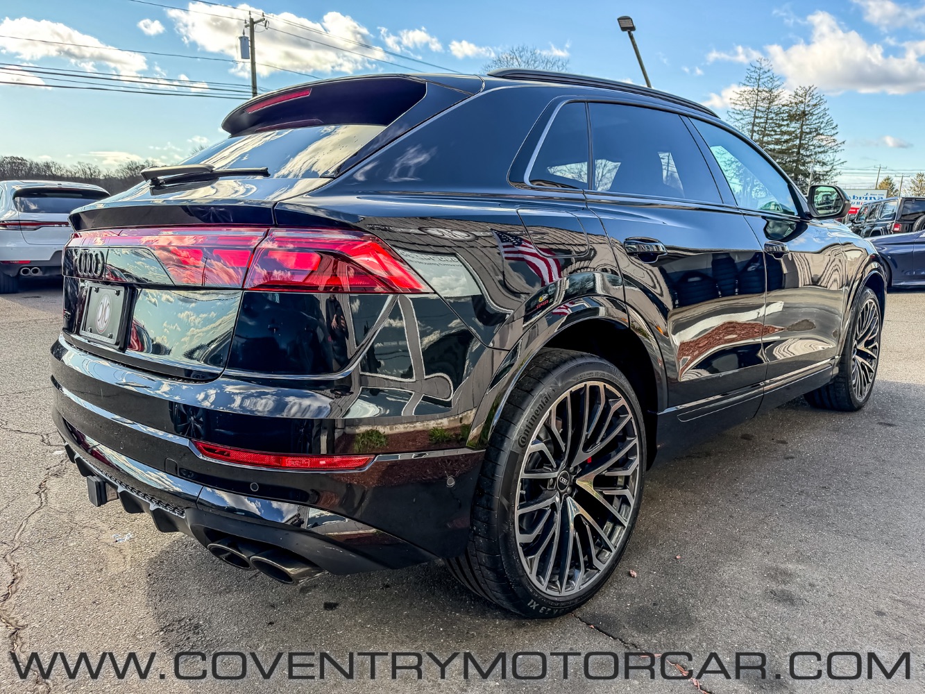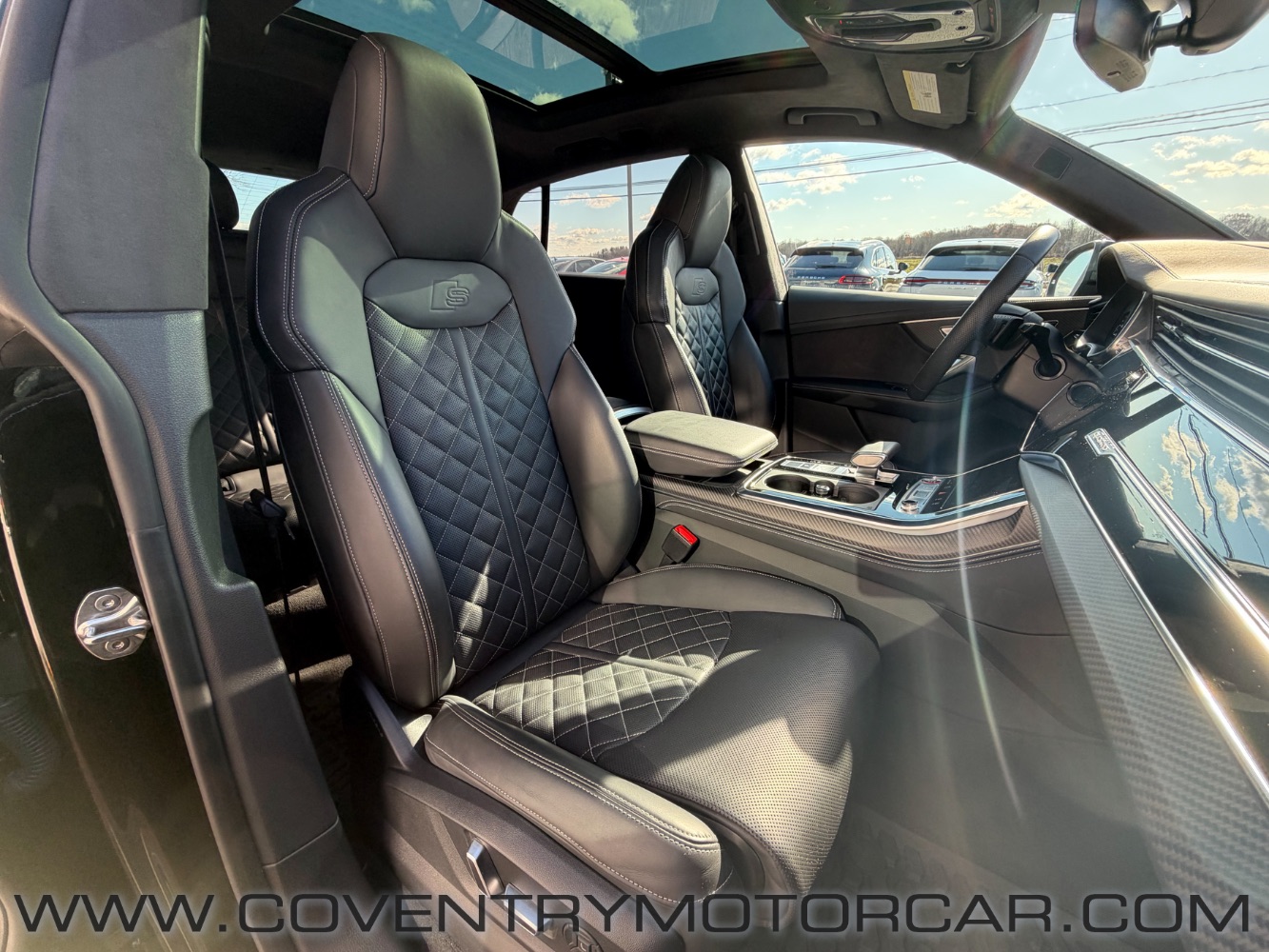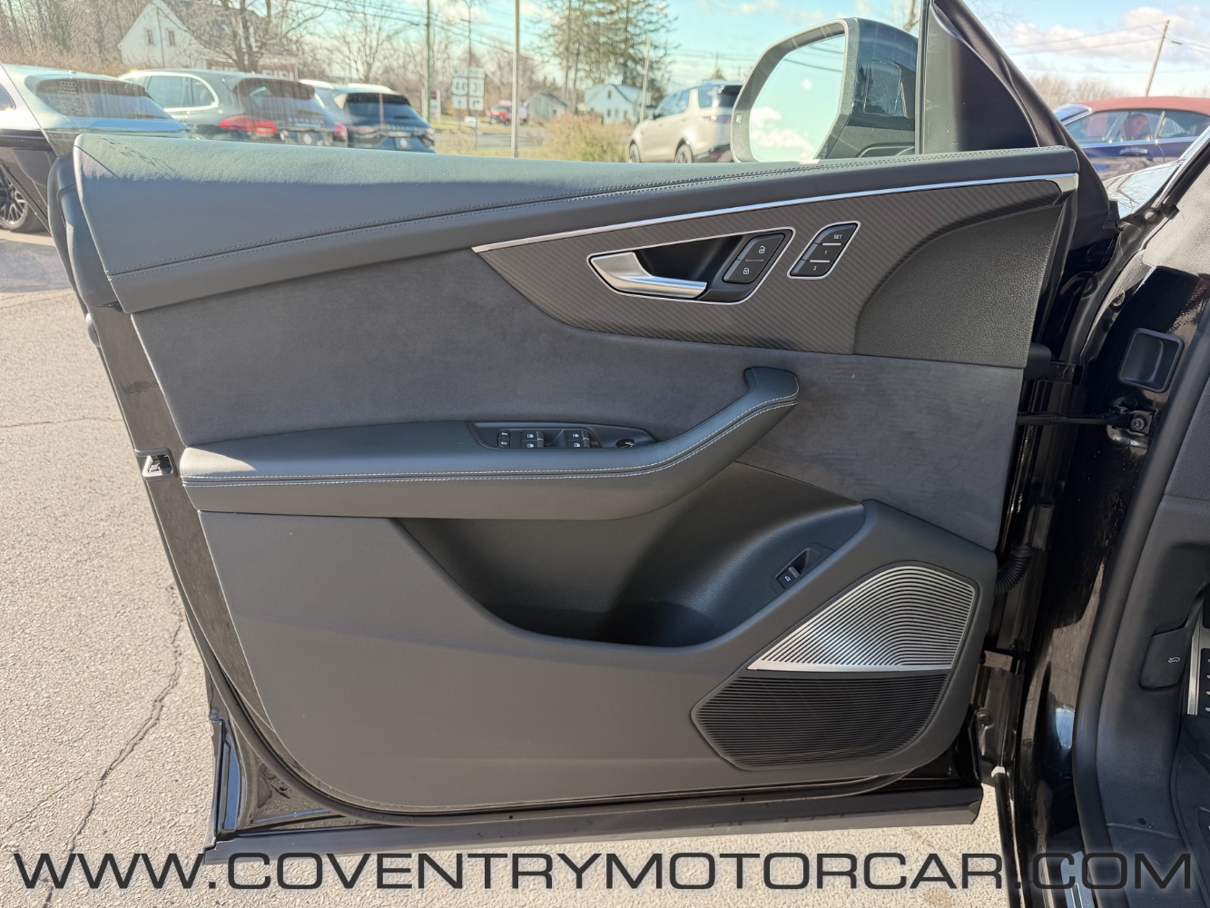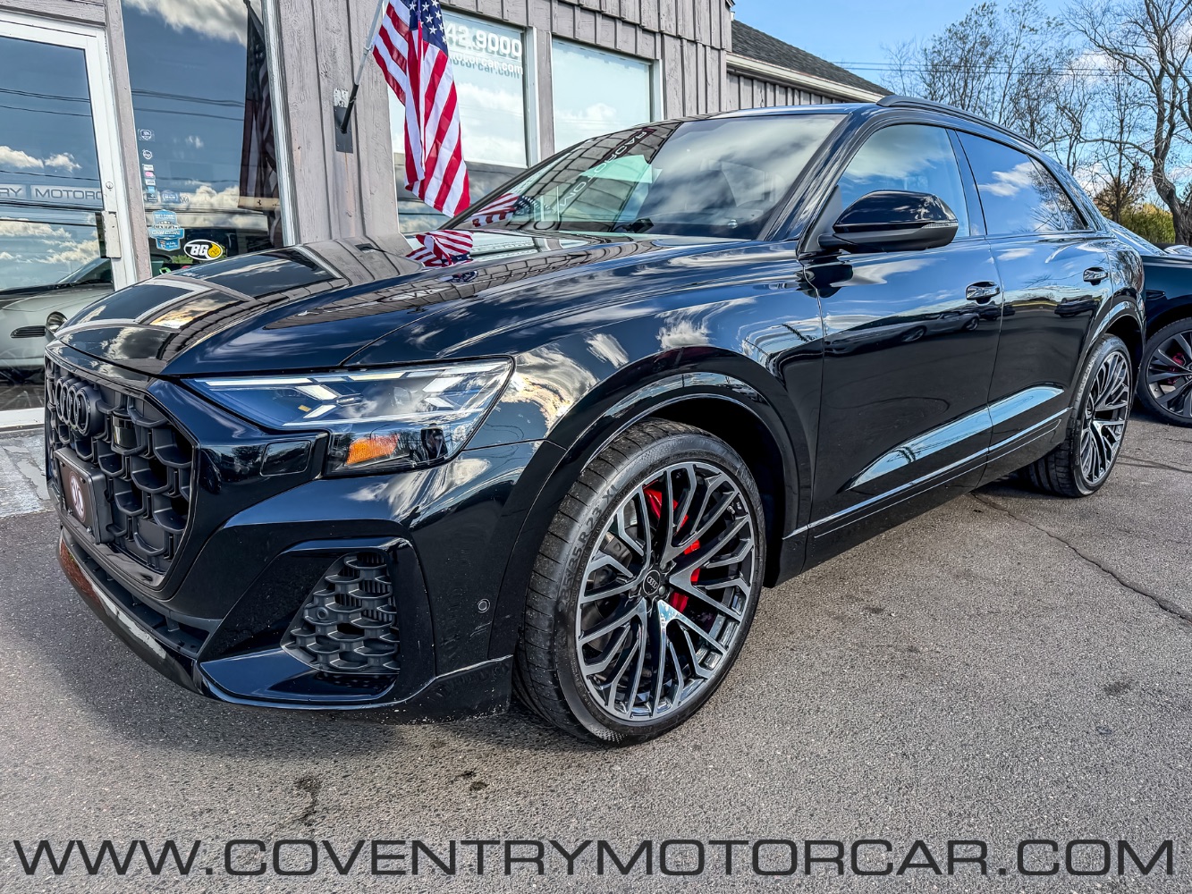 JUST IN: A STUNNING 2024 AUDI SQ8 FINISHED IN MYTHOS BLACK METALLIC OVER LUXURIOUS BLACK LEATHER, FULLY EQUIPPED WITH THE HIGHLY DESIRABLE PRESTIGE PACKAGE. THIS SQ8 IS LOADED WITH PREMIUM OPTIONS, INCLUDING THE S SPORT PACKAGE WITH RED BRAKE CALIPERS, ACTIVE ROLL STABILIZATION, AND A REAR SPORT DIFFERENTIAL; THE BANG & OLUFSEN ADVANCED 3D SOUND SYSTEM; AND THE LUXURY PACKAGE FEATURING EXTENDED LEATHER AND RELAXING MASSAGE SEATS. IT ALSO FEATURES STRIKING 23-INCH MULTI-SPOKE DESIGN WHEELS, THE AUDI SPORT EXHAUST, BLACK OPTICS PACKAGE, TRAILER HITCH, AND AUDI S BEAM LIGHTING. METICULOUSLY CARED FOR AND OFFERED WITH BOTH KEYS, MANUALS, AND THE ORIGINAL WINDOW STICKER, THIS EXCEPTIONAL SQ8 IS READY FOR ITS NEXT ENTHUSIAST – CONTACT US TODAY FOR MORE DETAILS OR TO SCHEDULE A TEST DRIVE.